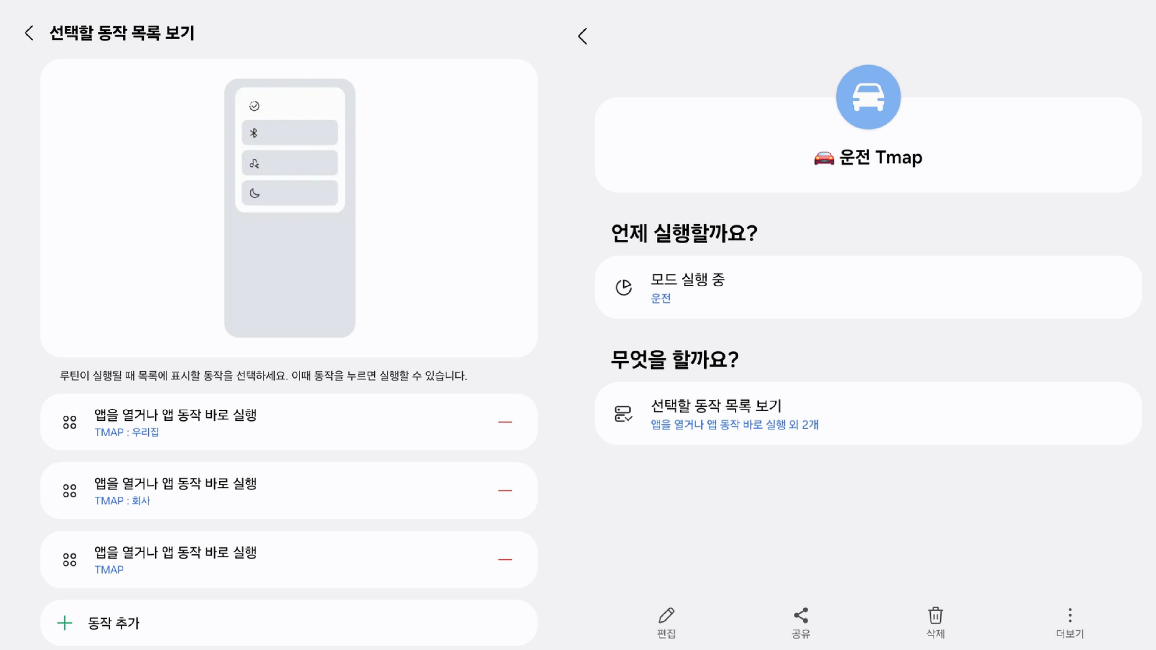 삼성 Good Lock에 있는 루틴+도 설치하시면 더 다양하게 활용할 수 있습니다.